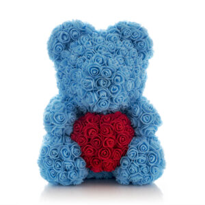 Rose Bear in Light Blue with Red Heart