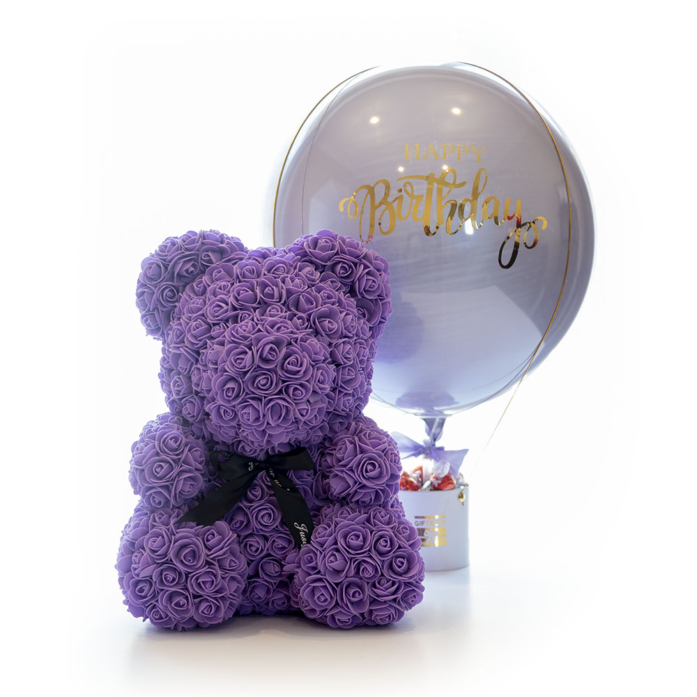 Rose Bear and ‘Happy Birthday’ Air Balloon Combination