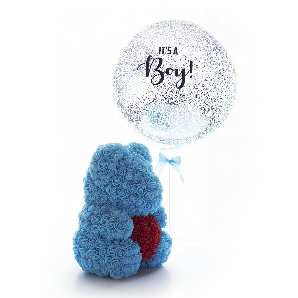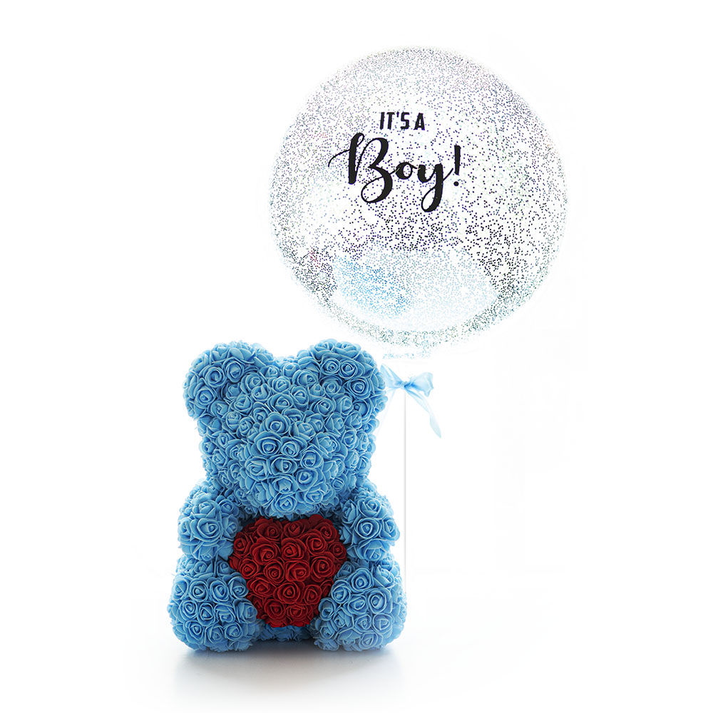 ‘Its a Boy’ Balloon and Rose Bear Combination