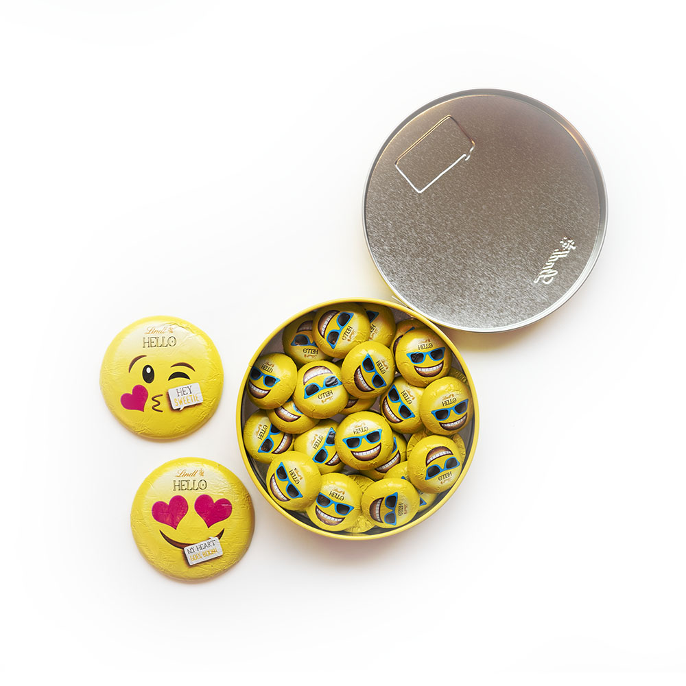 - 25 wrapped mini emotis from the finest Lindt milk chocolate